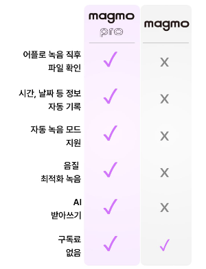 녹음은 기존방식과 마찬가지로 매그모의 내장메모리에 저장하는 방식이므로